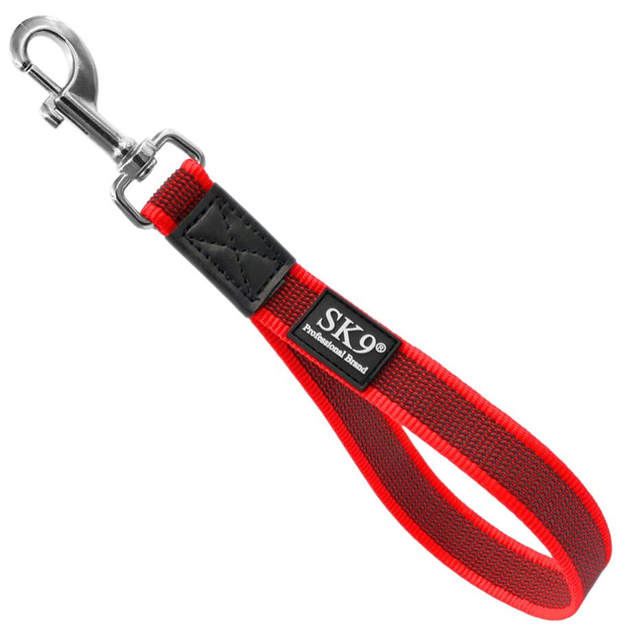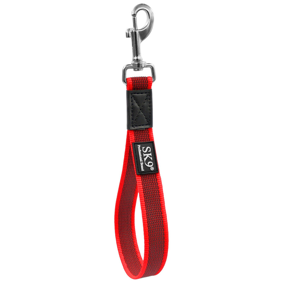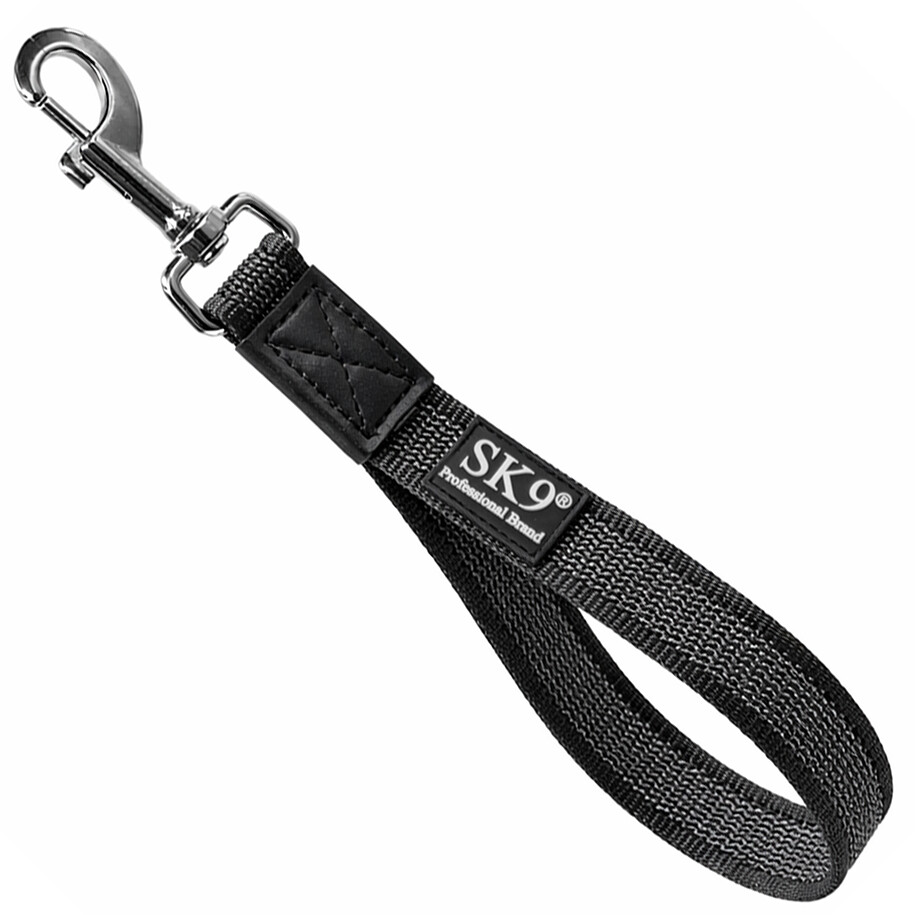 Confectionate din textil cauciucat cu latimea de 25mm, 30cm lungime si carabiniera de Inox, Lesa scurta de la SK9 va garanteaza un raport calitate pret excelent. O lesa ce poate fi folosita si in mediu umed sau sarat fara sa oxideze. Disponibila in 3 culori
