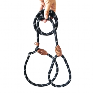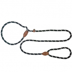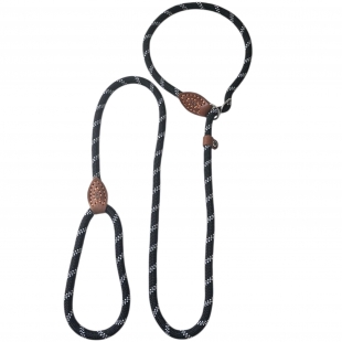 Lesa SK9 din cordelină are zgardă integrată și îmbinări din piele naturală. Sistemul de limitare a strângerii protejează câinele, iar opritorul din piele previne lărgirea accidentală. Ideală pentru dresaj și plimbări zilnice.