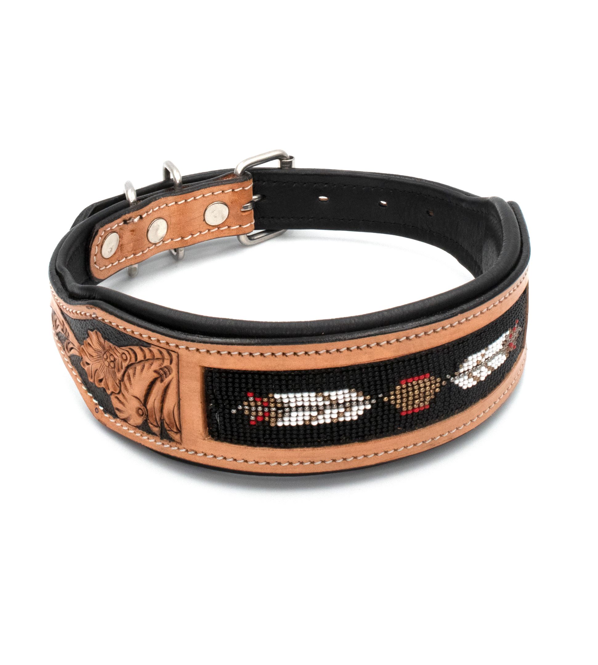 Descriere Zgarda din piele pentru caine sculptata manual, latime 4 si 5cm, SK9-Totem-Plus, masuri M-L-XL, TP-8